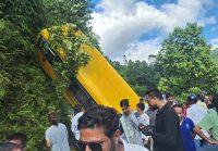 पोखरामा विद्यार्थी बोकेको स्कुल बस दुर्घटना